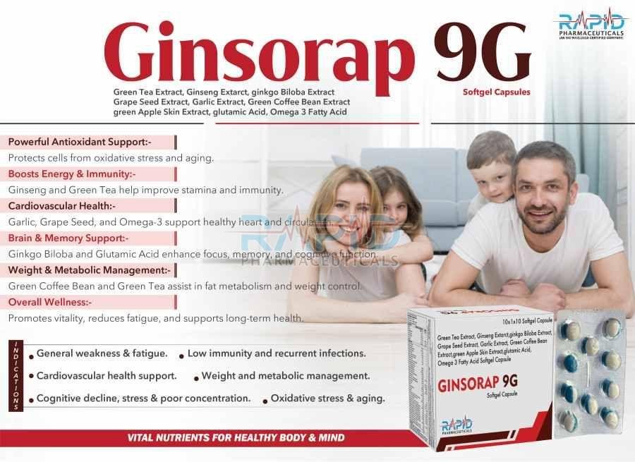 | Ingredients | Green Tea Extract 50mg + Ginseng Extract 42.5mg + Ginkgo Biloba Extract 20mg + Multivitamins + Multiminerals per softgel capsule |